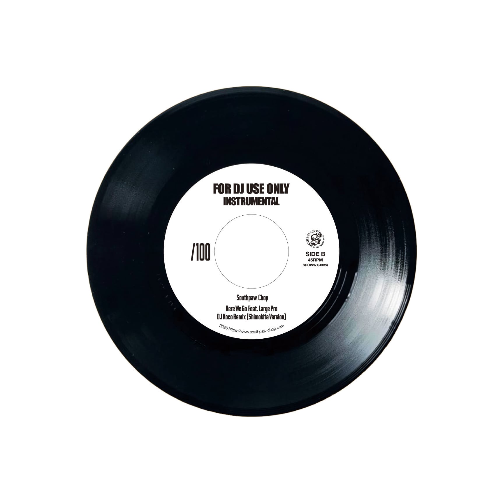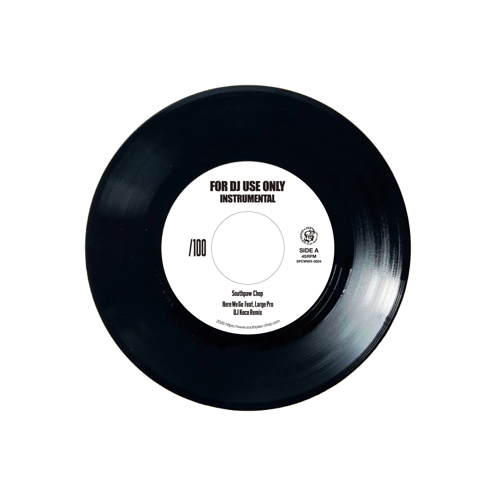 オリジナルは2010年にアメリカ・シカゴクロストークからリリースされた6曲入りEP『Never Stop Sampling』に収録されたSouthpaw Chop feat. Large Professorによる「Here We Go」。 その後2016年には、Large Professor自身によるセルフ・プロデュースのリミックスが7インチとしてリリースされ、オリジナルの魅力を新たな形で提示し話題を呼んだ。 そして2026年、本作はさらなる進化を遂げる。リミックスを手掛けるのは、世界中のミュージックラヴァーから絶大な支持を集めるDJ KOCO AKA SHIMOKITA。 今作はA面・B面それぞれに異なるアプローチで再構築されたDJ KOCOによる2バージョンを収録。フロア仕様のタイトなブレイクと、KOCOならではのFATなビート感覚が融合した、現場即戦力のダブルサイダー仕様となっている。 2010年オリジナルHERE WE GO そして2016年Large Professor Remixを経て、再びDJの手によって新たなクラシックへと更新される「Here We Go」。2026年、フロアへ向けて新章が刻まれる。