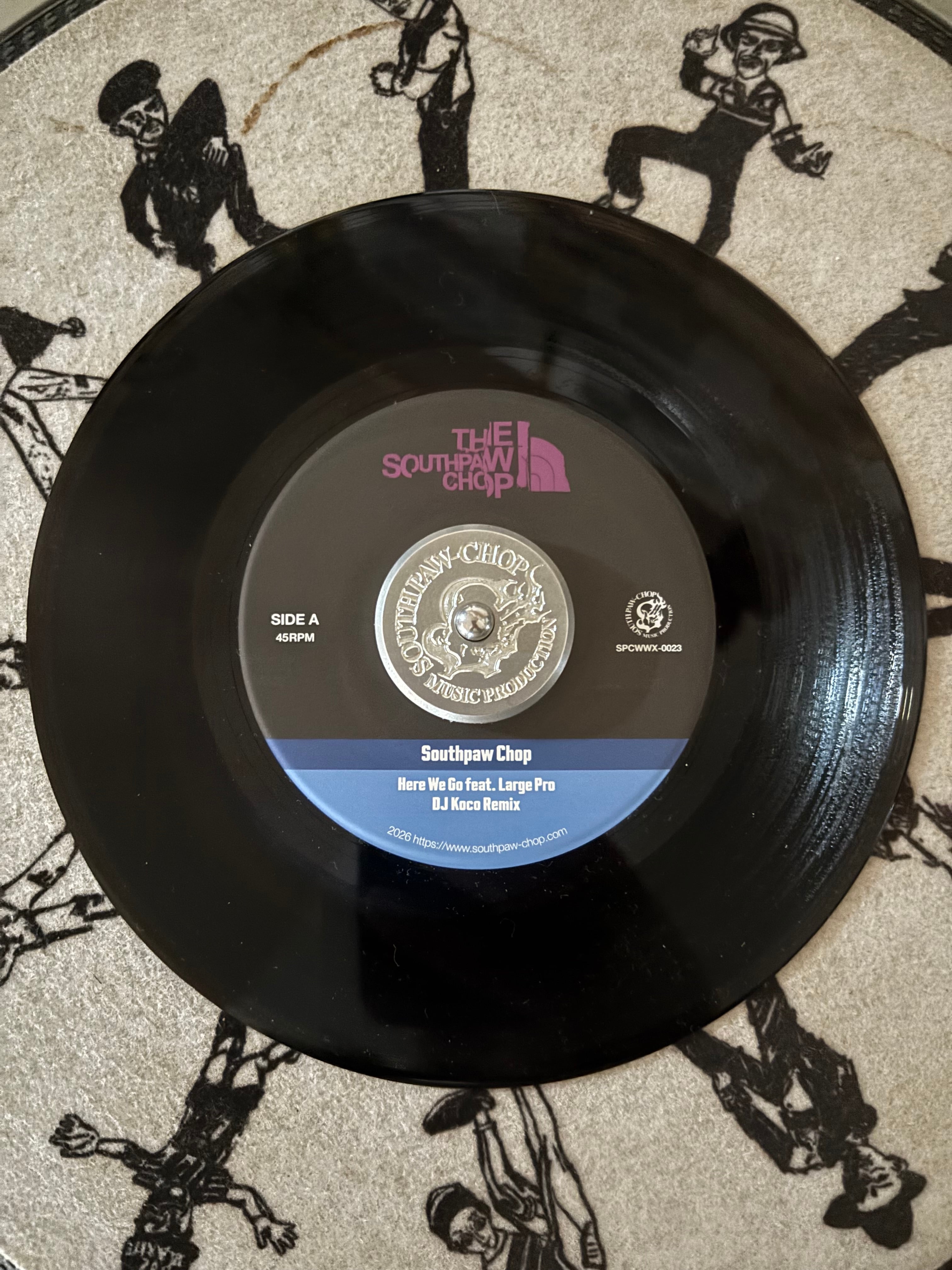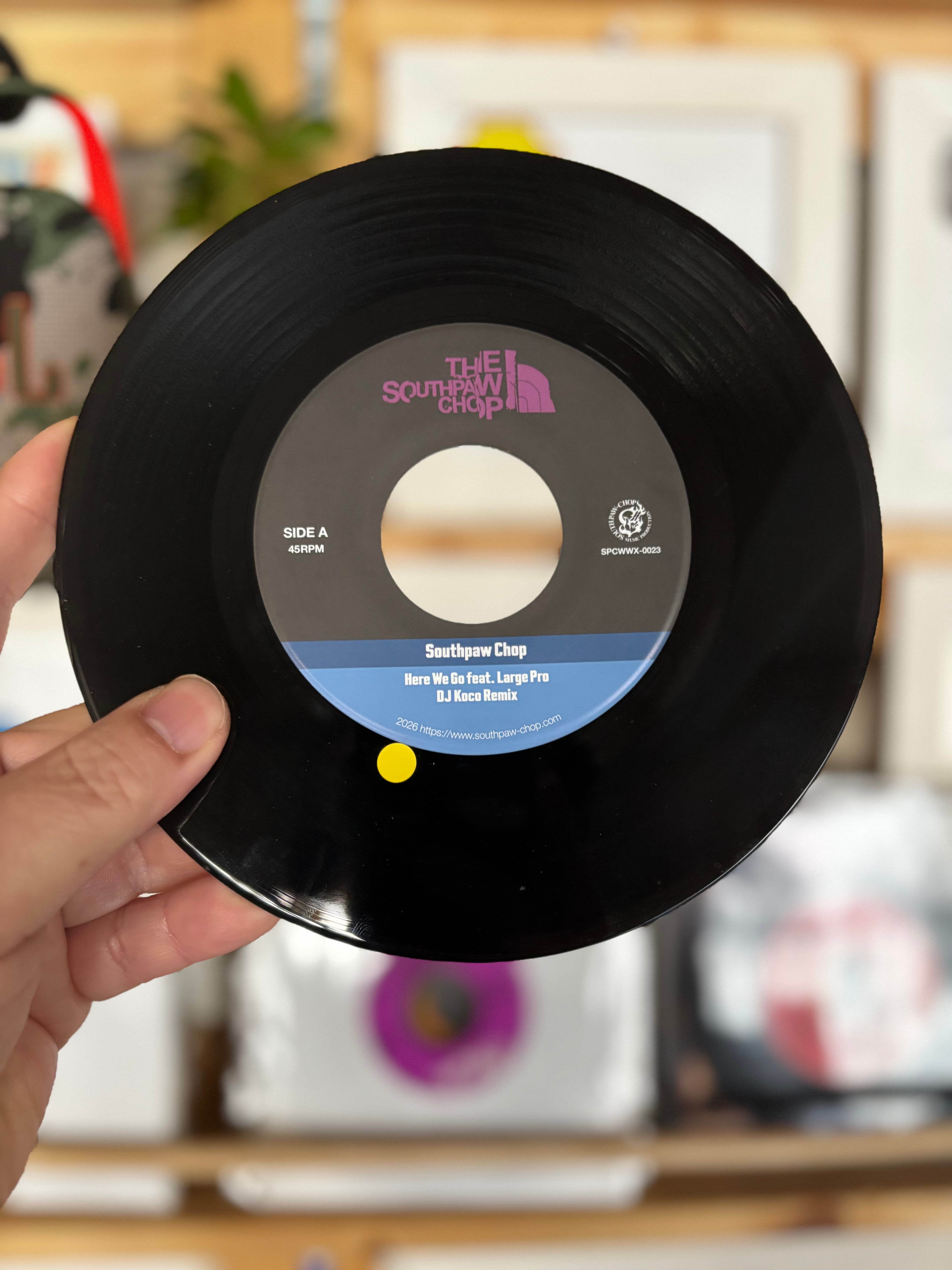 オリジナルは2010年にアメリカ・シカゴクロストークからリリースされた6曲入りEP『Never Stop Sampling』に収録されたSouthpaw Chop feat. Large Professorによる「Here We Go」。 その後2016年には、Large Professor自身によるセルフ・プロデュースのリミックスが7インチとしてリリースされ、オリジナルの魅力を新たな形で提示し話題を呼んだ。 そして2026年、本作はさらなる進化を遂げる。リミックスを手掛けるのは、世界中のミュージックラヴァーから絶大な支持を集めるDJ KOCO AKA SHIMOKITA。 今作はA面・B面それぞれに異なるアプローチで再構築されたDJ KOCOによる2バージョンを収録。フロア仕様のタイトなブレイクと、KOCOならではのFATなビート感覚が融合した、現場即戦力のダブルサイダー仕様となっている。 2010年オリジナルHERE WE GO そして2016年Large Professor Remixを経て、再びDJの手によって新たなクラシックへと更新される「Here We Go」。2026年、フロアへ向けて新章が刻まれる。
